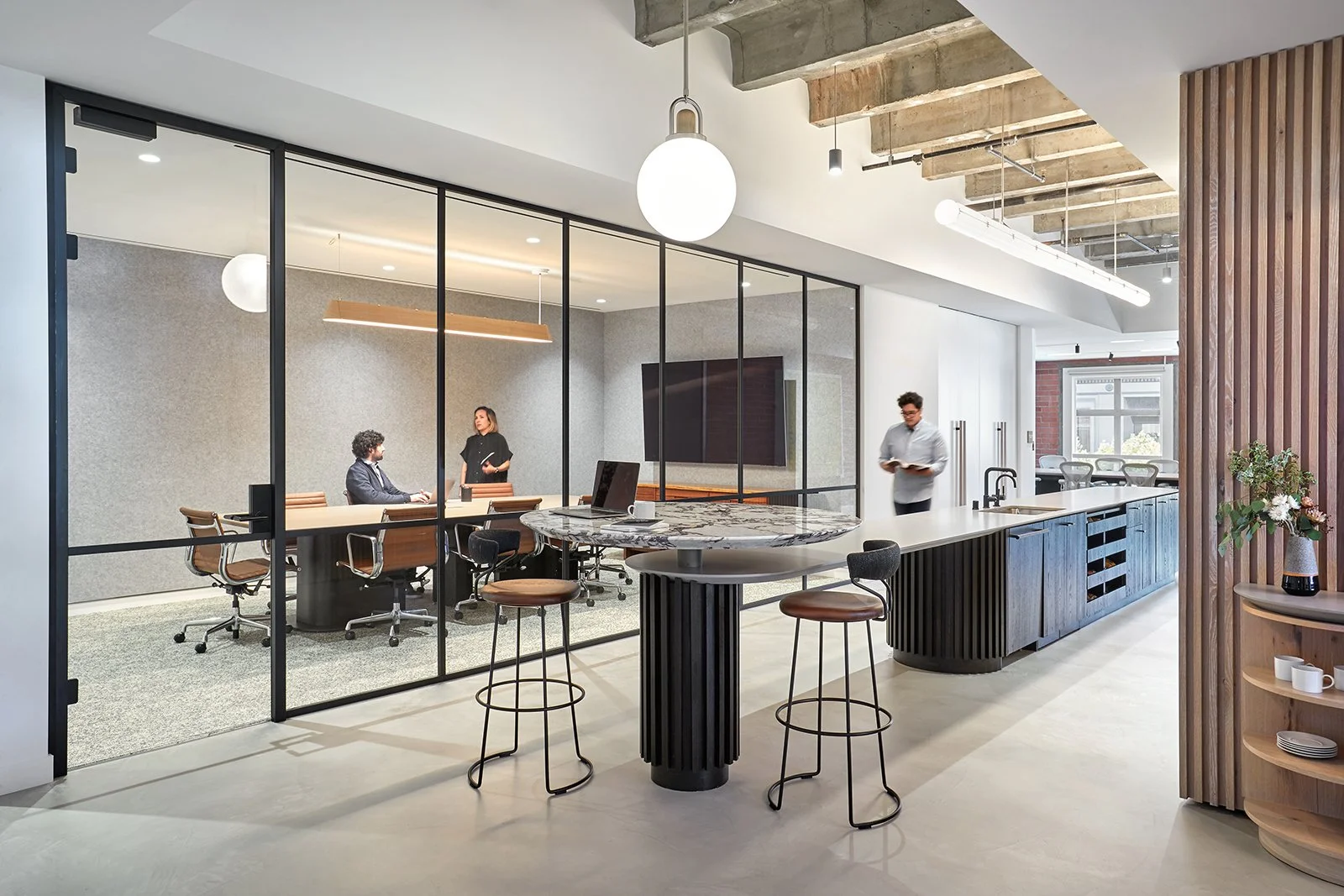 Artis Ventures is a boutique venture capital and private equity firm that partners with companies working on scientific innovation tech, specifically at the intersection of computer and life science. When Artis Ventures moved to a new space in one of San Francisco’s oldest neighborhoods, the design of the space needed to reflect the boutique nature of the company as well as the rich history of the neighborhood. The final result is a warm, luxe space that feels more like a chic hotel bar than a sterile VC office.