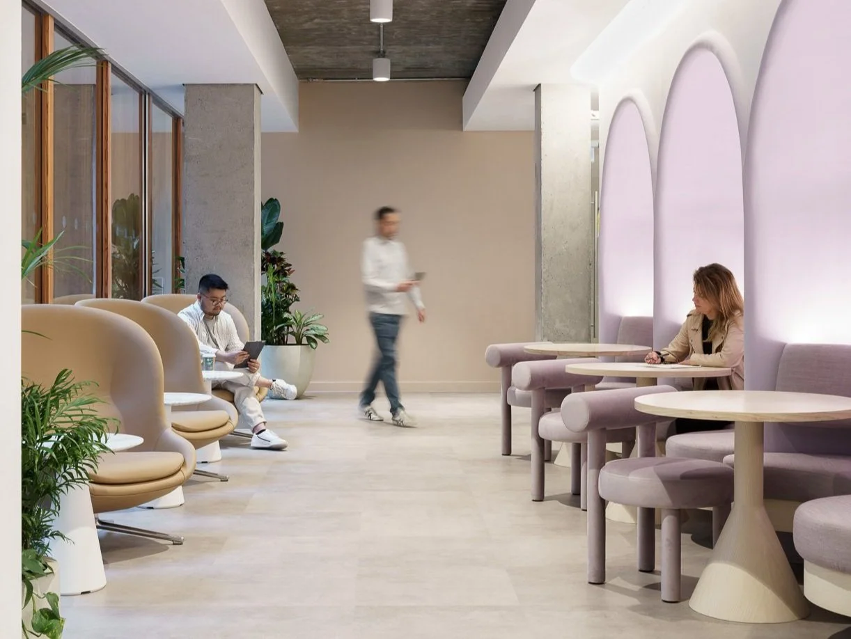 A neutral-toned hotel aesthetic for visitors & resident employees alike